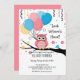 Cute Pink Owl with Balloons & Confetti Baby Shower Invitation
