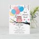 Cute Pink Owl with Balloons & Confetti Baby Shower Invitation