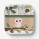 Cute Pink Owl Woodland Forest Baby Shower Paper Plate