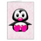 Penguin Design in black and bubble gum pink with a light pink / rose background.