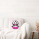 Penguin Design in black and bubble gum pink with a light pink / rose background.