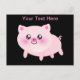 Cute Pink Pig on Black Postcard