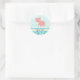 Cute Pink Pig; Teal Damask Classic Round Sticker