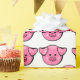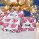 A cute and whimsical pink wrapping paper featuring a pattern of adorable little pigs all oinking!