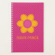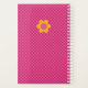 Fuchsia pink girly plaid pattern and yellow stitched flower. Personalised girl's name planner in cute spring floral design in bold colours.