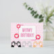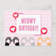 Cute Pink Polka Dot Cat Paws Up Happy Birthday Postcard