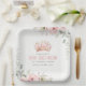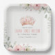 Cute Pink Princess Crown Tiara Floral Birthday Paper Plate