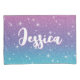 Another girly duvet by JessicaAmber - ask about custom orders! This cute bedspread features a gradient of faux digital glitter in pink, purple and cyan blue. Design is topped off with lots of sparkles. You can add your child's name across the middle of the cover, in a cute white script font. The font is called Squishy. If you want to use special characters, please copy them from this product: https://www.zazzle.com/squishy_font_ligatures_poster-228735887301083212 A gorgeous gift for your daughter's big girl bed. ••• Created 11 August 2023. For more beautiful mermaid decor, visit my store Zazzle.com/JessicaAmberArtist ••• For custom orders, email me at jessicaamberartist+zazzle(at)gmail.com