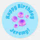Cute pink purple jellyfish kawaii cartoon classic round sticker