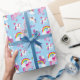 Decorate your birthday gifts with this cute colourful custom unicorn wrapping paper. Gift wrap has a pink unicorn, purple unicorn, and two white unicorns. In the background are beautiful rainbows and clouds. Add your kid's name for a personal touch.