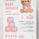 Amaze your guests with this elegant baby shower invite featuring an adorable little baby teddy bear and modern typography with detachable diaper raffle card. Simply add your event details on this easy-to-use template to make it a one-of-a-kind invitation.