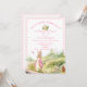 A charming and delicate baby shower invitation featuring a soft pastel palette with a pink gingham frame. The design incorporates sweet illustrations of Rabbit and floral accents in soft hues of blush pink, sage green. Whimsical flowers and greenery surrounds the sweet bunny rabbit graphic giving it an elegant yet playful touch. Perfect for welcoming a baby girl.