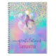 Make back to school fun with this Cute personalised Notebook. It is designed with elegant girly iridescent glitter drips in unicorn rainbow pink colours.