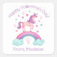 Cute Pink Rainbow Unicorn kids Classroom Valentine Square Sticker