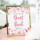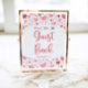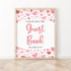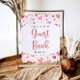 Guest Book Sign.' Delicately crafted with charming pink and red hearts, this sign adds a touch of sweetness to your celebration. It's the perfect invitation for guests to share their well wishes and heartfelt messages. Let love fill the pages of your guest book as friends and family commemorate this special day. Set the tone for a warm and affectionate gathering with this delightful sign, a perfect keepsake from your Valentine's celebration