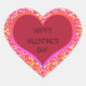 This heart shape valentine's Day girly gift sticker features a beautiful and colourful hot pink red rose seamless pattern with red and gradient cute heart, Happy Valentine's Day! script black hand written lettering. Change style of sticker from heart to another one. You can change the text, fonts colour by clicking personalise options.