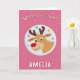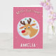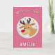 Cute Pink Reindeer Kid`s Name Merry Christmas Card