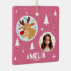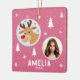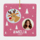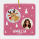 Cute Pink Reindeer Kid`s Name Photo Christmas Ceramic Ornament