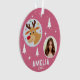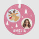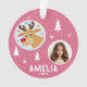 Cute Pink Reindeer Kid`s Name Photo Christmas Ornament