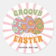Cute Pink Retro Groovy Easter Party Classic Round Sticker