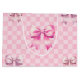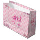 Cute Pink Ribbon and Gingham Sweet Girly Pattern Large Gift Bag