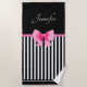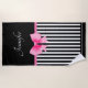 Personalized Cute Pink Ribbon Black & White Striped Beach Towel.