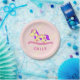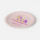 Cute Pink Rocking Horse Girly Birthday Party Paper Plate for Kids. Cute paper plate with a yellow rocking horse with pink and purple spots. Personalise the plates with your name. This plate is perfect for a children birthday party especially for a girl because of the pink and purple colours.