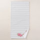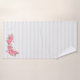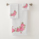 Cute Pink Rose Bud White & Grey Stripes Bath Towel Set