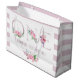Cute Pink Rose Gold Floral Striped First Birthday Large Gift Bag