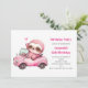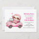 Cute Pink Sloth Driving a Car Birthday Invitation