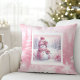 Cute Pink Snowman Christmas Scene Pinkmas Pillow