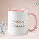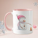 Cute mug with an illustration of a Snowman with a pink hat and scarf roasting marshmallows. Great gift for the upcoming holidays. Personalise the text with your own message. Illustrated and designed by Patricia Alvarez.