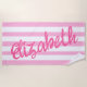 Cute Pink Striped Script Name Personalised Beach Towel