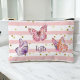 A cute pattern for girls with horizontal pink and white stripes with scattered golden polka dots make this a fun choice in accessory bags. Three beautiful butterflies in shades of pink and lavender purple flutter around your monogram initials. Personalise the text template with your desired monogram initials or other text. Stylish and girly, this versatile bag is a great choice for makeup, toiletries, small school supplies, medications and more.
