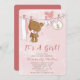 Cute Pink Teddy Bear It's A Girl Baby Shower Invitation