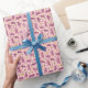 Cute Pink Tigers Tropical Leaves Abstract Animal Wrapping Paper