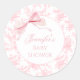Cute Pink Toile Bow Ribbon Baby Girl Shower Classic Round Sticker