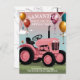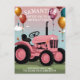 Cute Pink Tractor Birthday Card Invitations & Announcements.