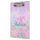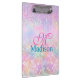 Cute Pink Unicorn Glitter rhinestone Drip monogram Clipboard. Make back to school fun with this Cute personalised Clipboard. To make it extra special, it is also monogrammed and personalised with name. click the "customise further" link and use the design tool to modify the design if you like. Beautiful, modern and cool Clipboard for school, college or even your journals. Show off your personal style, look fashionable, trendy and feel stylish around your friends with a unique design on your Clipboard or customise it over another product of your choice. Whether for valentines day, Christmas or as a gift in general it makes a great gift idea for any girl who loves modern sparkly things. PLEASE NOTE: These are flat printed graphics - no real glitter, jewels or raised parts