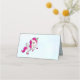 Folded place cards with a white winged unicorn with pink mane, tail and hooves.