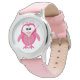 Watch with a cute cartoon vector illustration of a whimsical pink girly cartoon owl with a pretty ribbon. A stylish, modern, fun, trendy gift for kids / girls who love owls. If you need any assistance customising your product please contact me through my store and I will be happy to help. Original art by Molly Sky Designs at Zazzle.