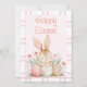 Cute Pink Watercolor Bunny and Easter Eggs Holiday Card