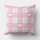 Cute Pink & White Bear and Heart Flannel Plaid Cushion