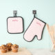 Cute Pink White Chequered Retro Rustic Monogrammed Oven Mitt & Pot Holder Set