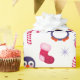 Cute Pink & White Christmas Pattern with Penguins Wrapping Paper
