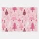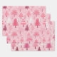 Cute Pink White Retro Christmas Trees Wrapping Paper Sheet