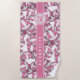This volleyballs pattern beach towel features a random pattern of varied size pink and white stylised volleyballs turned every which way on a customisable white background - personalise with her name and jersey number - by katz_d_zynes