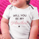 Ask the one you want to be your child's godmother with this super cute godmother proposal baby bodysuit. Have your baby girl wear this and use it to pop the question "Will you be my godmother" in a combination of pink and black text!