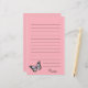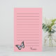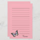 This pink stationery has a beautiful butterfly in the lower right corner. The lined paper also has display text at the bottom. You can edit the display text to show the recipient's name in an elegant black script.