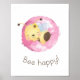 Cute Pink/Yellow Bee Happy Nursery Girls Wall Art
